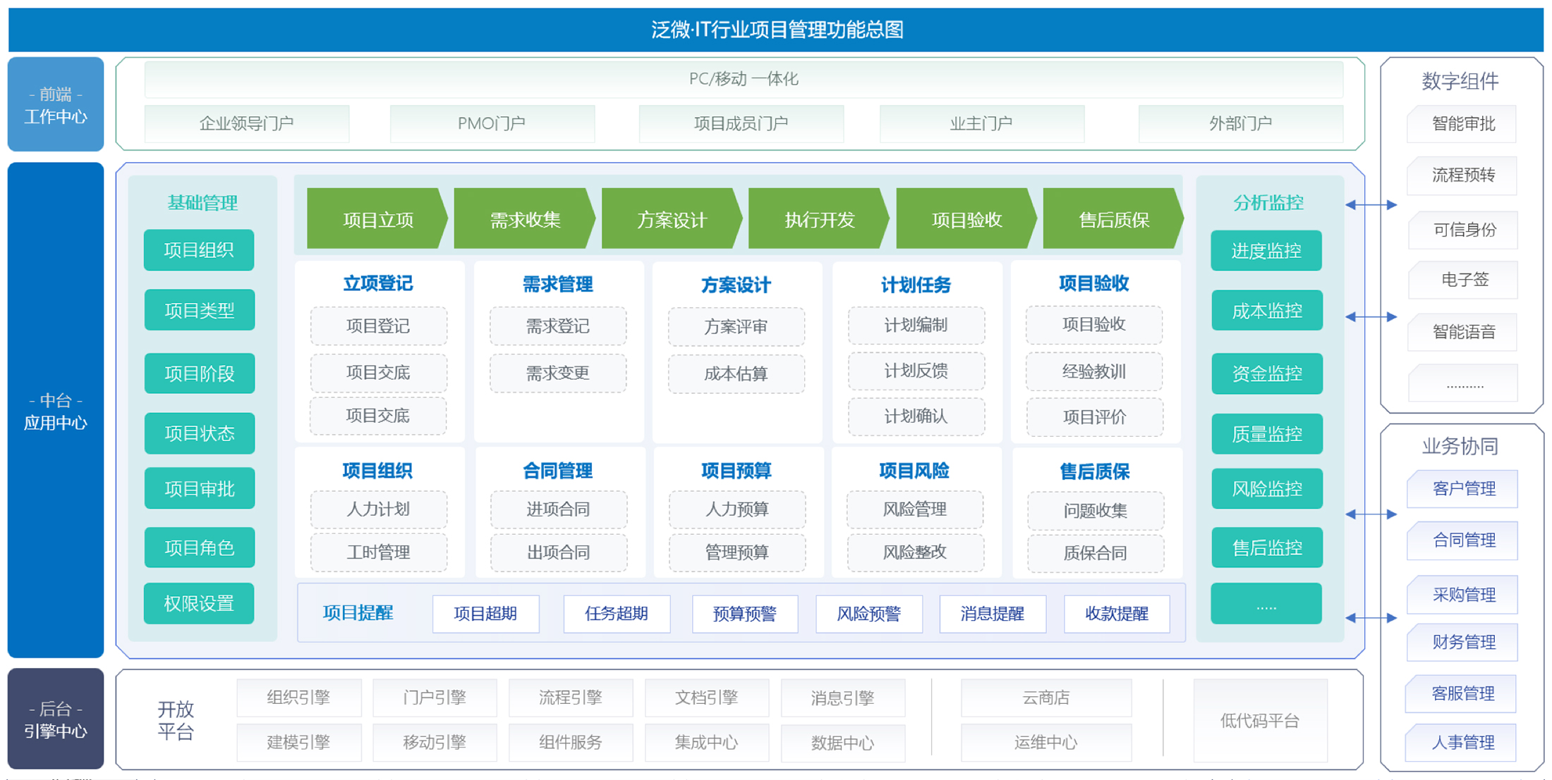 IT行业项目管理存在两大风险,即“交付风险”与“财务风险”;交付风险是由于项目管理过程中,目标与任务不明确、合同不规范等因素导致的,财务风险往往表现在项目人力、资源等方面的浪费,费用控制不合理等,打造全过程项目管理平台,从项目立项、执行到项目费控与成本归集进行全流程精细化管理,帮助IT企业降低项目成本、提升经济效益、优化管理模式已势在必行。