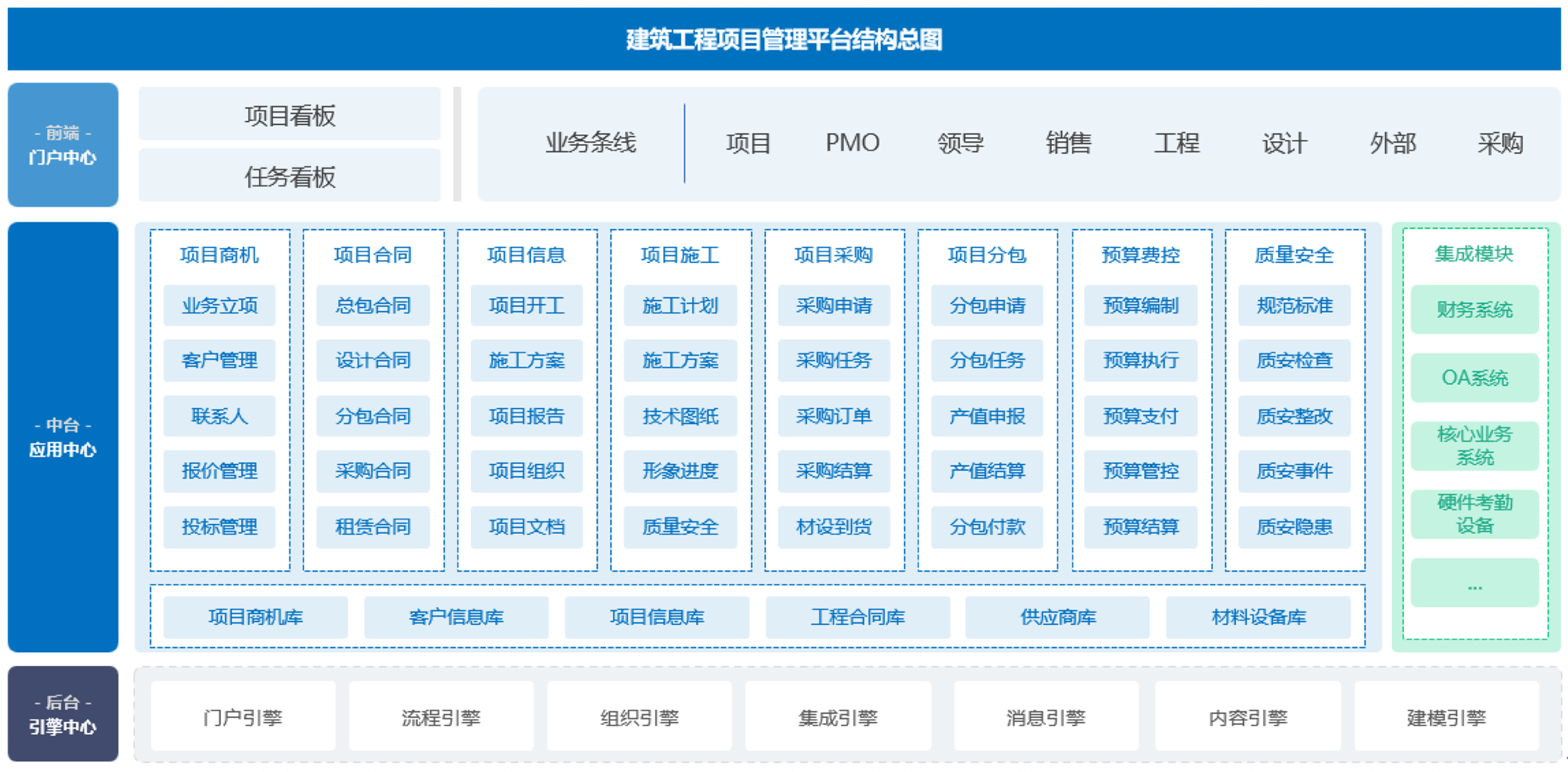 1. 建立企业级一体化建筑工程项目管理平台,实现建筑工程项目全生命周期及各业务功能的统一管理和协同,实现多组织层级、多业态、多项目、多用户的协作沟通、管理。